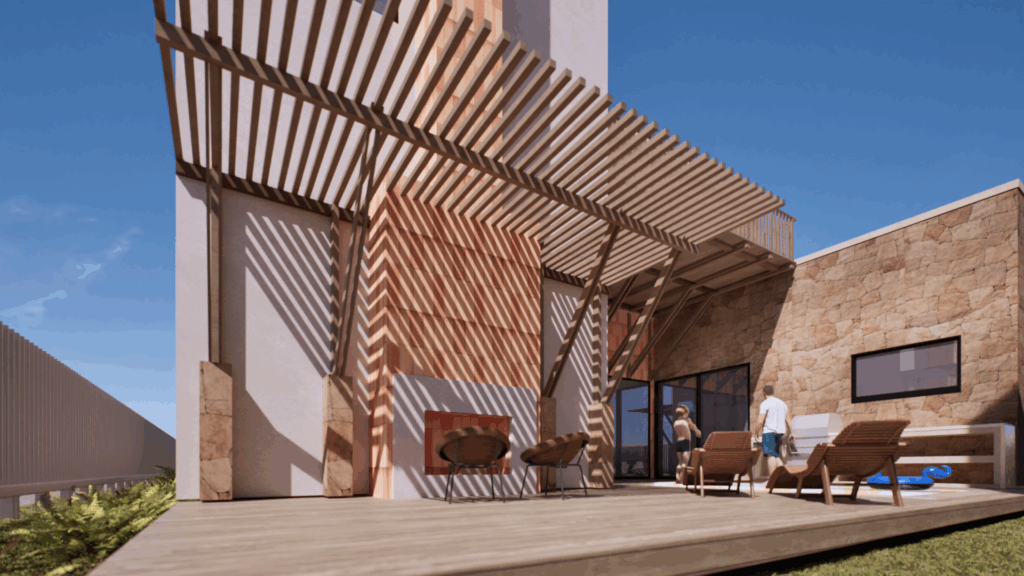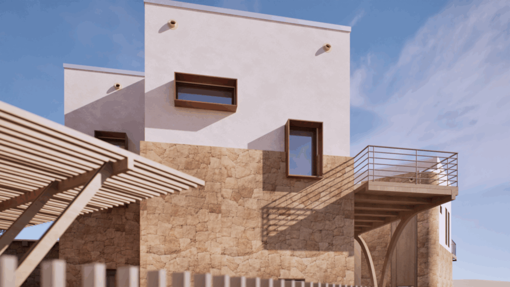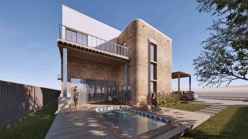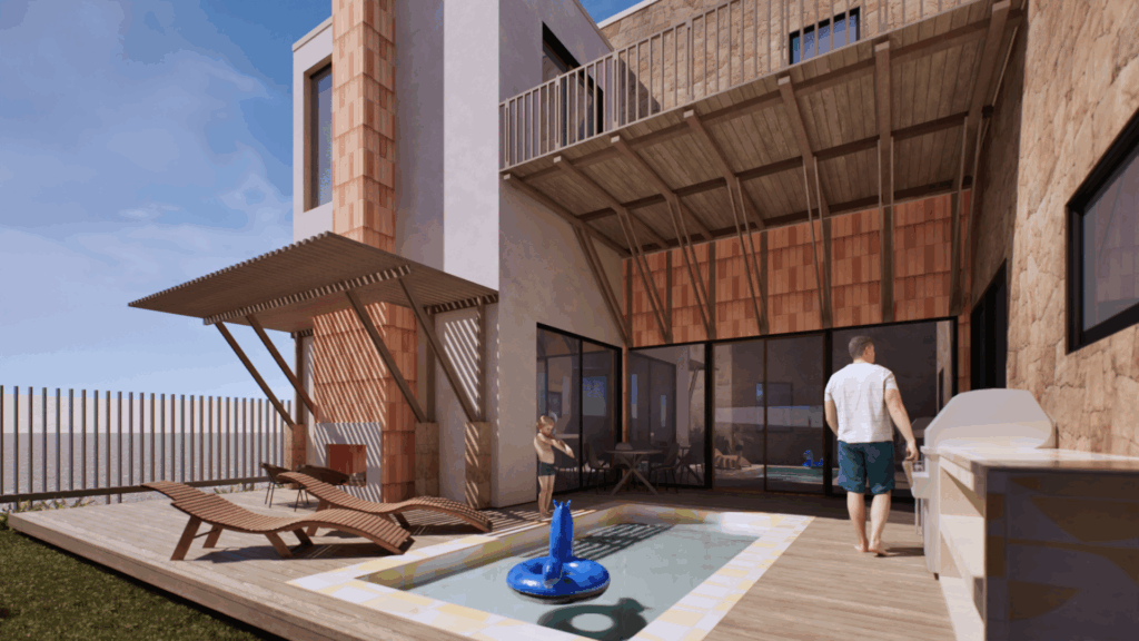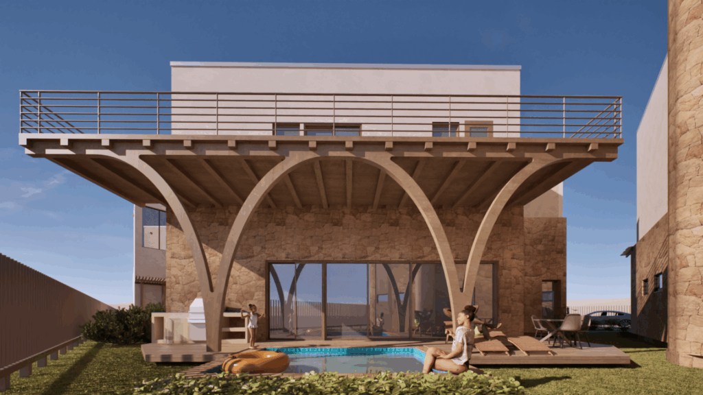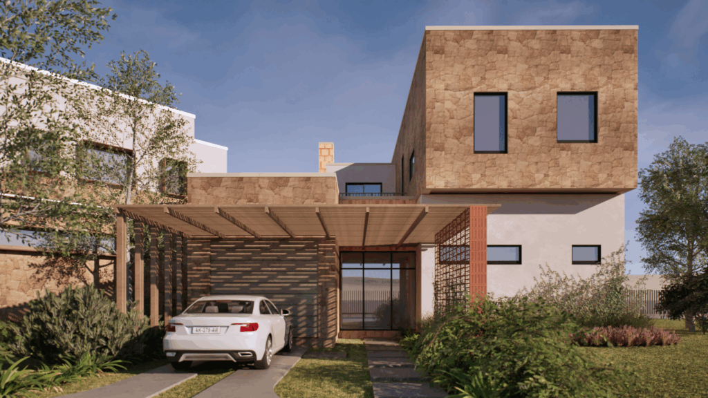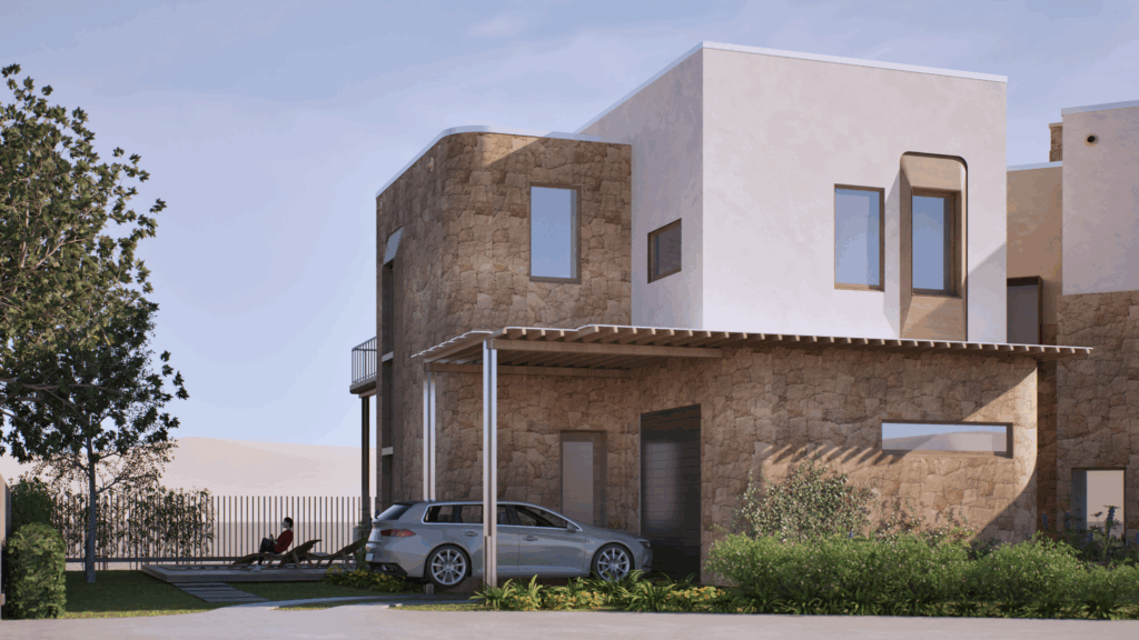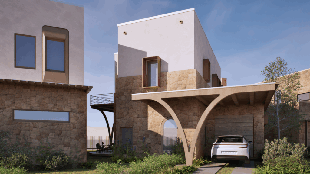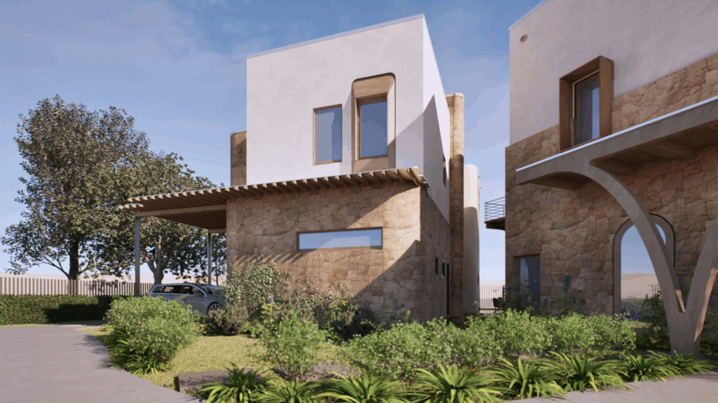 Each home is designed to evoke a warm, timeless feel through the use of stucco finishes, clay tile accents, and arched elements, while integrating clean, modern lines. Landscaping, outdoor terraces, and strategic orientation on the lot further enhance the connection to nature and the communal layout of the site. This project aims to balance elegance with livability in a rapidly evolving urban context.